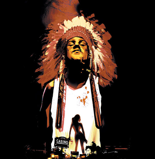 I cannot agree with the Sopranos comparison, though. Aaaron has stated he had The Wire in mind when creating Scalped, and that’s more like it. Like a mixture of Oz and The Wire, maybe. Deadwood? I haven’t even seen that series yet, so throw in some Frozen River and Gomorrah, and that should do it for most of you.
